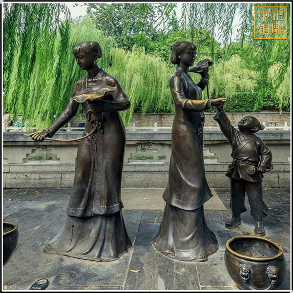 中正銅雕-大型園林景觀人物銅雕塑、大型園林景觀人物銅雕塑價格、大型園林景觀人物銅雕塑廠家,我公司集科研、開發(fā)設(shè)計(jì)、普通鑄造、一次性整體澆鑄、精密鑄造于一體。本公司技術(shù)力量雄厚,設(shè)備,不但重視中國青銅器原有的藝術(shù)風(fēng)格,還繼承了文物原有的藝術(shù)品味,在繼承和發(fā)揚(yáng)古老文化的同時,更深一步為新老客戶定身量制各種銅制、鐵制工藝品等產(chǎn)品,曾多次受到寺廟長老和美術(shù)學(xué)院教授的好評。