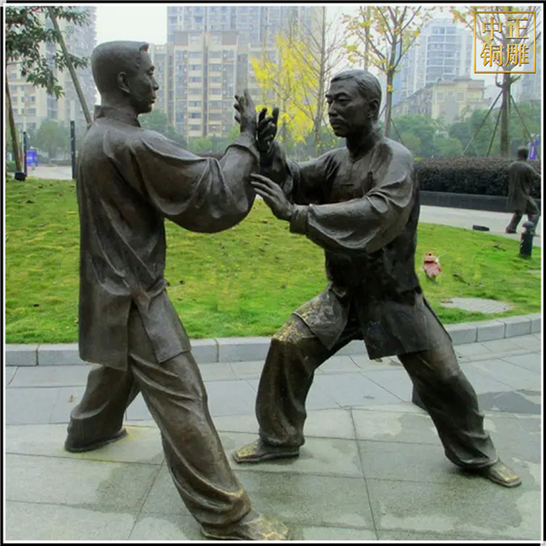 • 中正銅雕-園林打太極人物雕塑定制、園林打太極人物雕塑定制價格、園林打太極人物雕塑定制廠家,我公司集科研、開發設計、普通鑄造、一次性整體澆鑄、精密鑄造于一體。本公司技術力量雄厚,設備,不但重視中國青銅器原有的藝術風格,還繼承了文物原有的藝術品味,在繼承和發揚古老文化的同時,更深一步為新老客戶定身量制各種銅制、鐵制工藝品等產品,曾多次受到寺廟長老和美術學院教授的好評。?